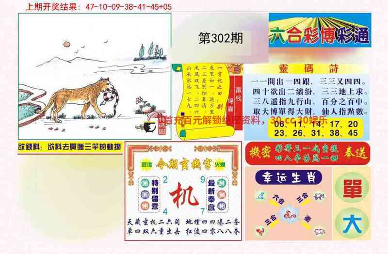 | 303期:无敌七肖【蛇鸡羊兔马猴虎】开:兔15准 | |||